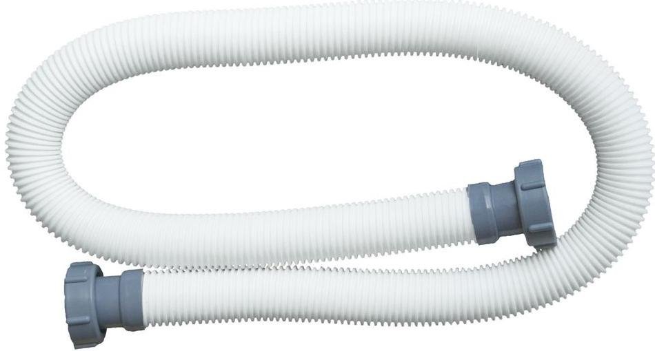 Hadice bazénová o průměru 38 mm s převlečnými matkami s rozměrem 1 a ½ “na propojení filtrace, bazénu popř. dalšího bazénového příslušenství. Provedení v bílé barvě tvarovaná do „husího krku“. Díky tomu má dostatečnou ohebnost a velkou pevnost zároveň. Propojovací hadice délky 1,5 m má oba konce zakončené převlečnými matkami ze šedého plastu.