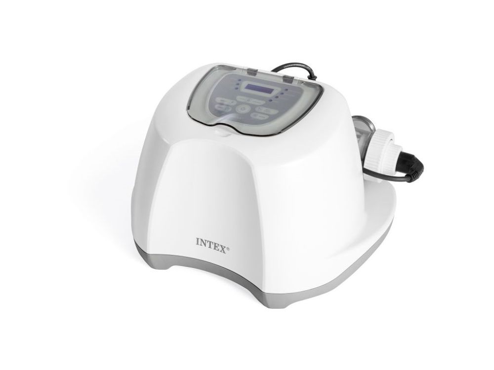 Chlorinátor s integrovaným systémem elektolýzy soli redukuje potřebné množství chlóru až o 70 %. Vhodný pro všechny nadzemní bazény Intex i jiné do objemu vody 26,5 m2