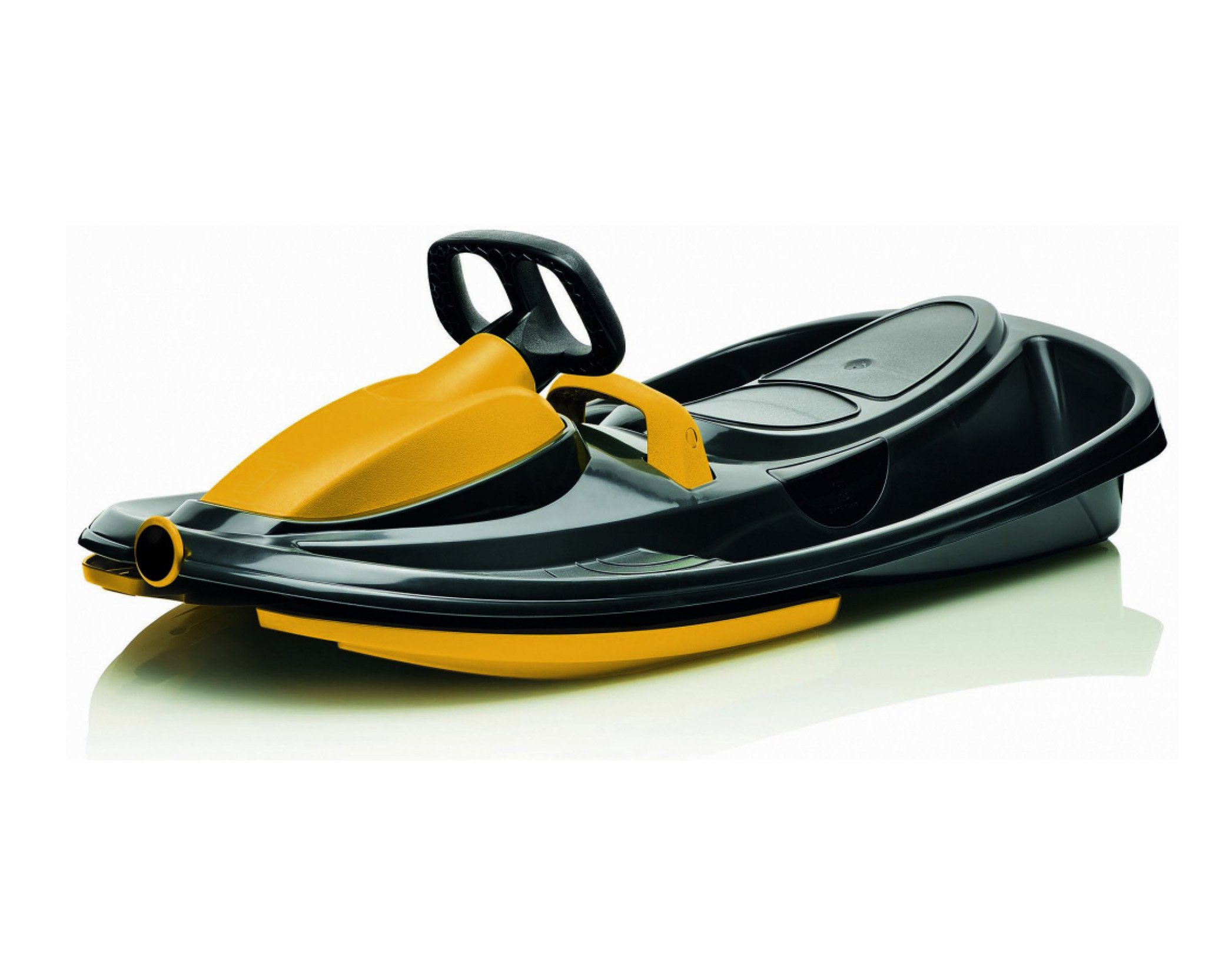 Stylový design závodní formule. Středová brzda pro větší bezpečí. Originální provedení se čtyřmi lyžinami. Zaručuje snadné zatáčení. Zatáčení pomocí diferenciálu zvyšuje rychlost v zatáčkách, protože každá lyže může zatočit pod jiným úhlem. Samonavíjecí mechanismus tažného lana. Masivní brzda s pružinou pro navrácení do původní polohy. Žádné kovové prvky ani šrouby, nemusíze mít obavu z koroze a montáž není nutná.