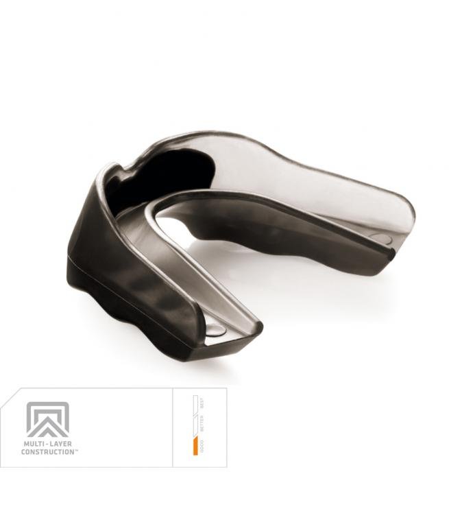 Chránič zubů PRO SENIOR představuje špičku v oblasti chráničů zubů a je tedy vhodný i pro ty nejtvrdší kontaktní sporty. Poskytuje Vám maximální bezpečnost. Vrstvy spojené s integrovaným a absorbačním rámem nabízejí ochranu a podporu vašeho chrupu také proti otřesu mozku a umožňuje lepší dýchání. Odolnost proti čelnímu nárazu chrání přední zuby před nárazem.