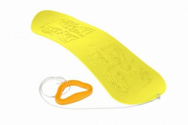 Dětský kluzák z velmi kvalitního plastu s provázkem. Kluzák má délku 72×22 cm, vhodné pro děti od 3 let. Produkt navžený pro moderní éru snowbardingu. Obdoba snowboardu za rozumnou cenu.