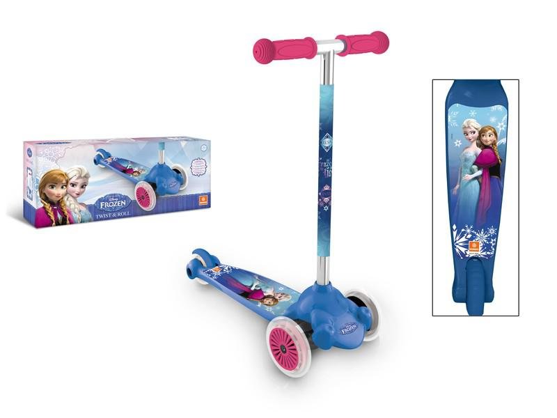Pro nejmenší děti – dvě přední kolečka ovládaná pomocí náklonu řidítek. Koloběžka vyniká díky originálnímu designu s motivem Frozen/Ledové království. Motiv Frozen je dodáván dle aktuálních skladových zásob.