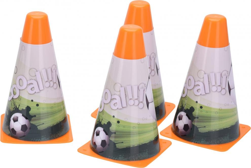 Klasické plastové kužely – ideální na rekreační a klubové tréninky na každém povrchu. Kužely jsou vysoké 17 cm a polepené obrázkem s fotbalovým motivem. Skvělý pomocník pro zlepšení fyzické kondice. Hodí se i při různých hrách, zábavách a cvičeních.