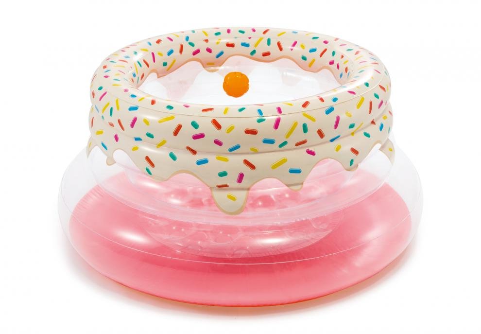 Dětská skákací ohrádka s trampolínou. Trampolíná má atraktivní realistický design koblihy, měkké nafukovací dno a bezpečné okraje. Výrobek je vhodný na domácí použití i na zahradu.