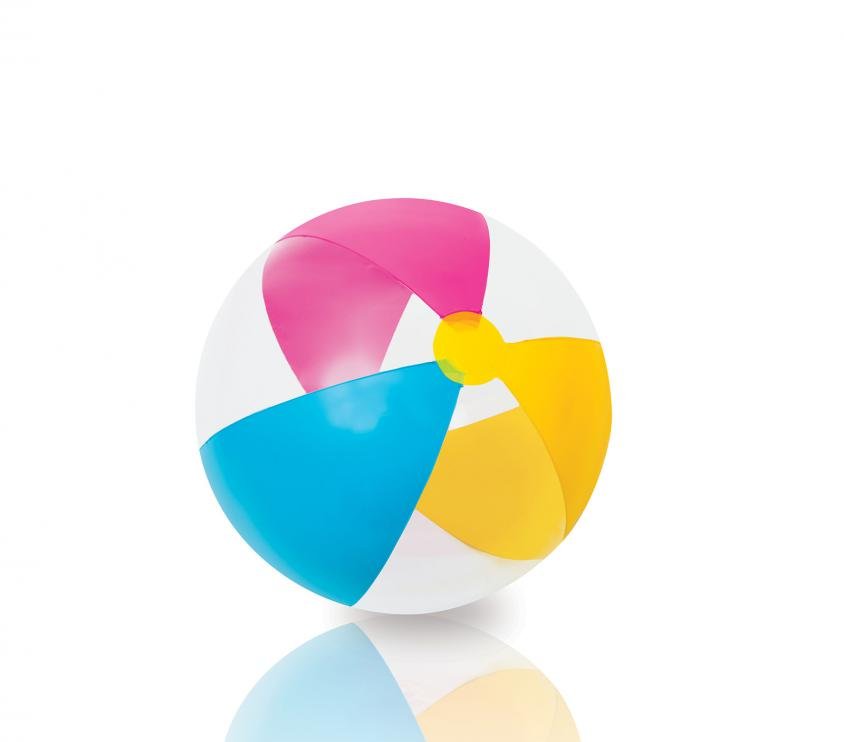 Klasický dětský trojbarevný nafukovací míč ve dvou barevných kombinacích. Ideální společník na vodu či na pláž.