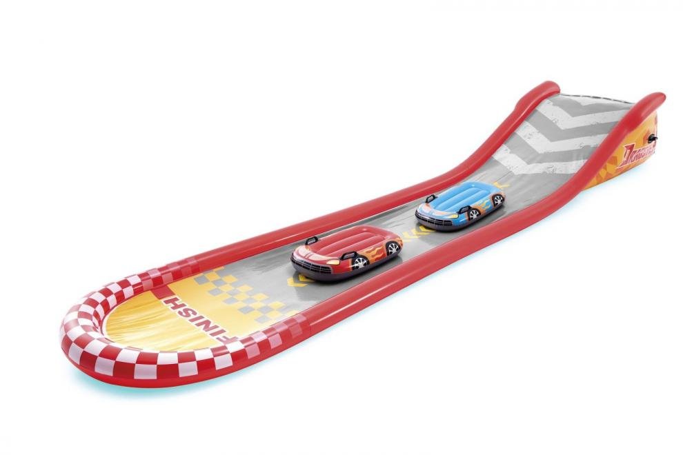 Skluzavka pro děti, se kterou zažijí nekonečnou zábavu – stačí jen připojit k zahradní hadici. Součástí skluzavky jsou dva nafukovací surfy s madly. Zažij spoustu zábavy na vodní klouzačce Intex. Skluzavka je inspirována nejobávanějš