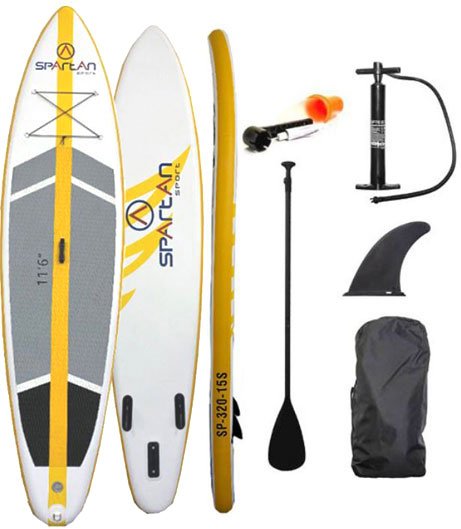 Paddleboard Spartan Sup 320-15 je ideální pro začátečníky i pokročilé “padleborďáky” – a to jak děti, tak i dospělé. Velmi dobrou tuhost a stabilitu zaručuje 15 cm silná “deska” s protiskluzovou úpravou. Deska je nafukovací, takže se snadno přepravuje a přiloženou pumpou kdykoli nafouknete a připravíte k použití. Kromě toho je vpředu vybaven elastickými úchyty, takže si můžete připevnit tašku, batoh, či jiné zavazadlo, aniž by spadlo do vody.