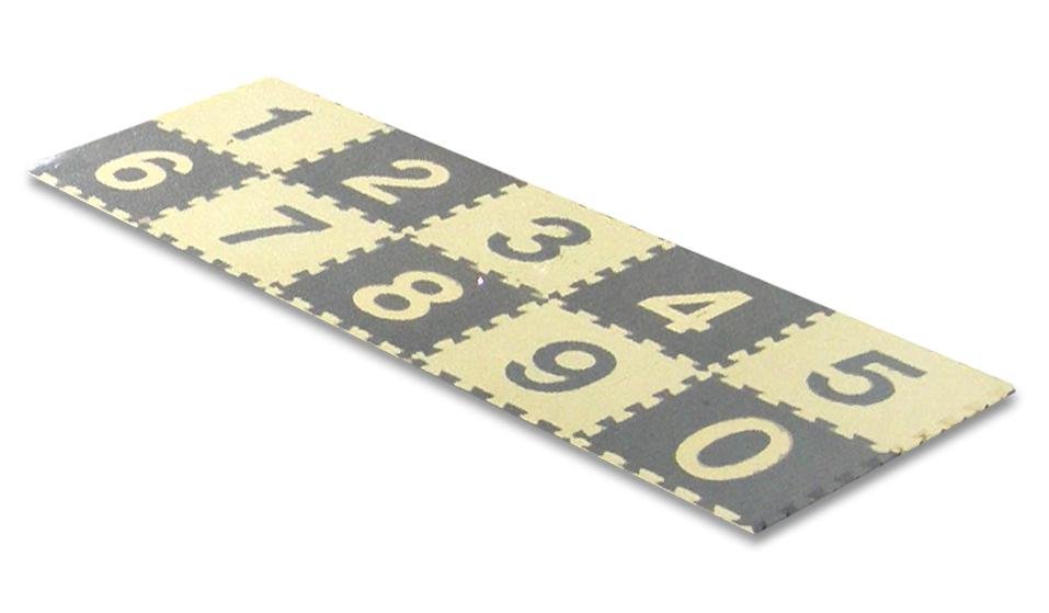 Zábavná podlaha s čísly pro dětské koutky a tělocvičny. Je vhodná všude tam, kde se pohybují malé děti. Školky, školy, dětské koutky. Lze z nich vytvořit hrací kouty, kde není dětem chladno od podlahy.