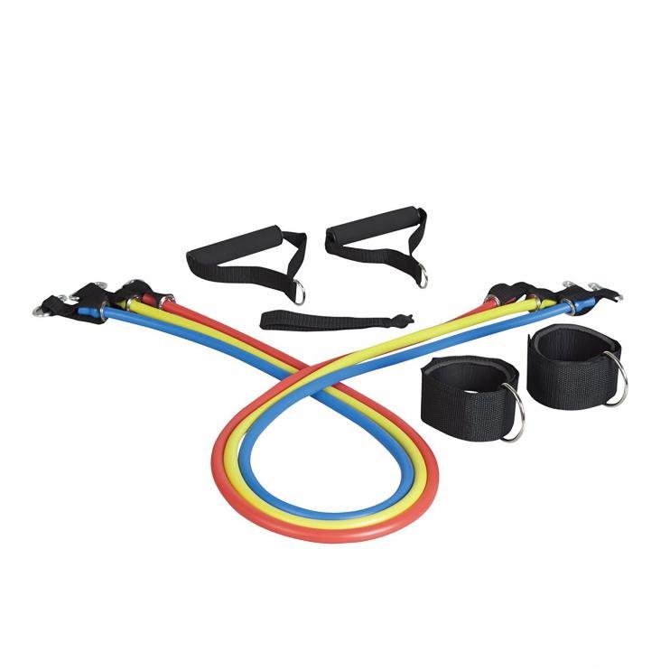 LiveUp Expander Set je ideální pomůckou pro takové cvičení, se zaměřením na posílení horní i dolní poloviny těla. Součástí sady jsou tři gumy s různou tuhostí, molitanová madla pro ruce, pásky na kotníky a kotva do dveří.