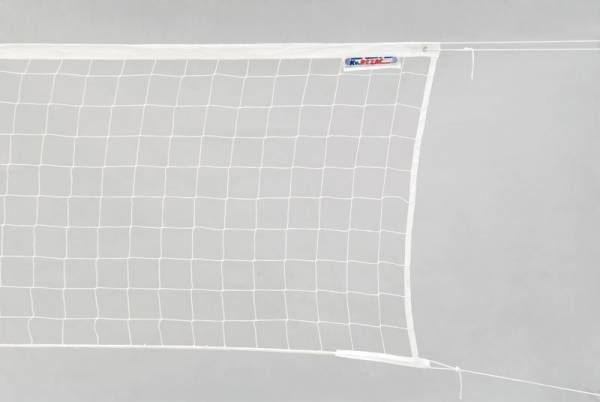 Síť VOLLEYBALL s lankem-bílá: Volejbalová síť pro běžné účely. Uzlová síťovina bílá z polypropylenu 2 mm, oko 10 cm. Horní okraj je oblemován polypropylenovým bílým popruhem, hotová šíře lemování 5cm. V popruhu je protaženo ocelové lanko o délce 12,5m, na jednom konci se smyčkou. Boky jsou lemovány PP bílým popruhem, hotová šíře lemování 2cm. Spodní okraj je obšitý. Síť je nahoře i dole opatřena úvazky o délce 2m. Součástí sítě jsou vytyčovací pásky šíře 5cm