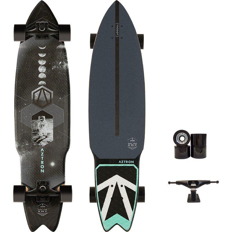 AZTRON SPACE je pokročilý longboard surfskate s tvarem inspirovaným surfovacím prknem. Vyniká širokou platformou pro stání, která umožňuje pohodlnou jízdu. Delší rozvor nyní umožňuje jezdci roztáhnout nohy tak, aby odpovídaly jejich skutečnému postoji, jako na surfovém prkně. Model Space doporučujeme pro jezdce o výšce 180-195 cm.