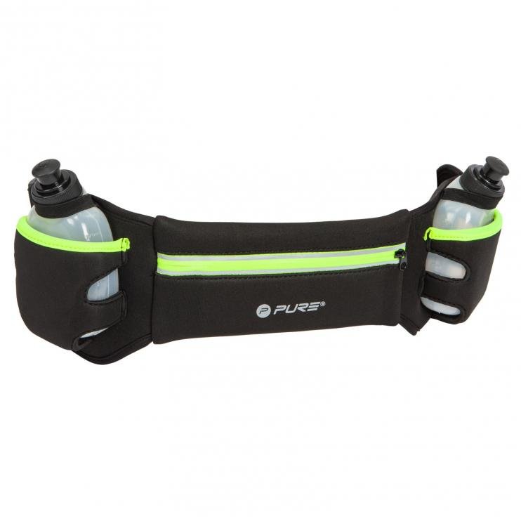 Ergonomický a velmi lehký běžecký pás Pure 2 Improve je ideální pro každého běžce. Běžecký pás je vyroben z voděodolného neoprenu a obsahuje 2 lahve po 170 ml. Mezi lahvemi je vodotěsné pouzdro s rozměry 20x9cm, které lze uzavřít zipem. Opasek má reflexní pás pro větší viditelnost z dálky v nepříznivém počasí. Polstrovaný pás je nastavitelný: 90 – 120 cm. Výhodou je také jeho nízká hmotnost – pouhých 300 g.