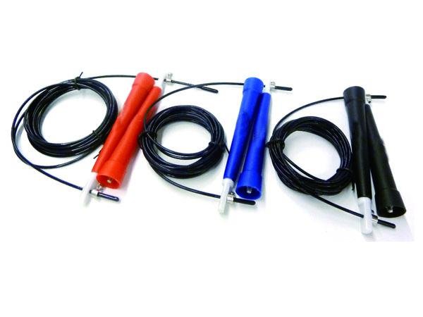 Velmi rychlé švihadlo s ocelovým lankem v bužírce.Lehké plastové rokojeti, díky kterým je skákání dostatečně pohodlné a přitom stále velmi rychlé.Možnost nastavení délky pomocí posuvné plastové zarážky v madlech.Rozměry: celková délka 300 cm, průměr lanka 0,25 cm. Barva dodávána dle skladové dostupnosti.