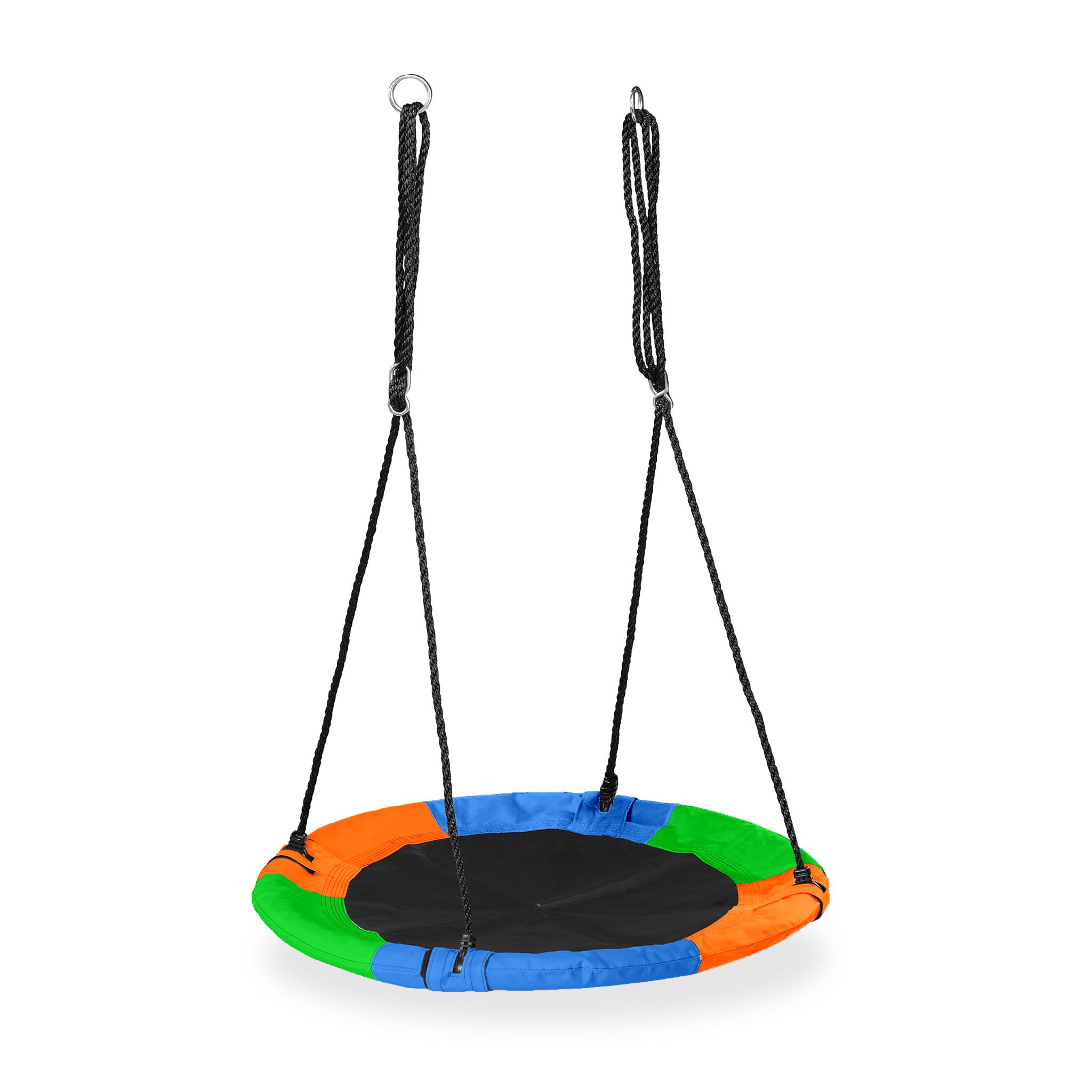 Objevte dokonalý doplněk pro vaši zahradu, domácnost nebo i dětský pokoj – Trojbarevnou houpačku typu „hnízdo“ s průměrem 100 cm. Tato pohodlná a prostorná houpačka je ideální pro děti i dospělé, kteří si chtějí užít chvíle relaxace nebo veselého houpání. Houpačka Vás potěší nejen svým pestrobarevným designem v motivu 3-color, ale i svou odolnou ocelovou konstrukcí, která zajišťuje dlouhou životnost a stabilitu, zatímco měkká  prodyšná síť a příjemný potah přes ocelovou konstrukci, poskytují maximální komfort. S jednoduchou montáží a možností nastavení výšky je tato houpačka ideálním místem pro relax.