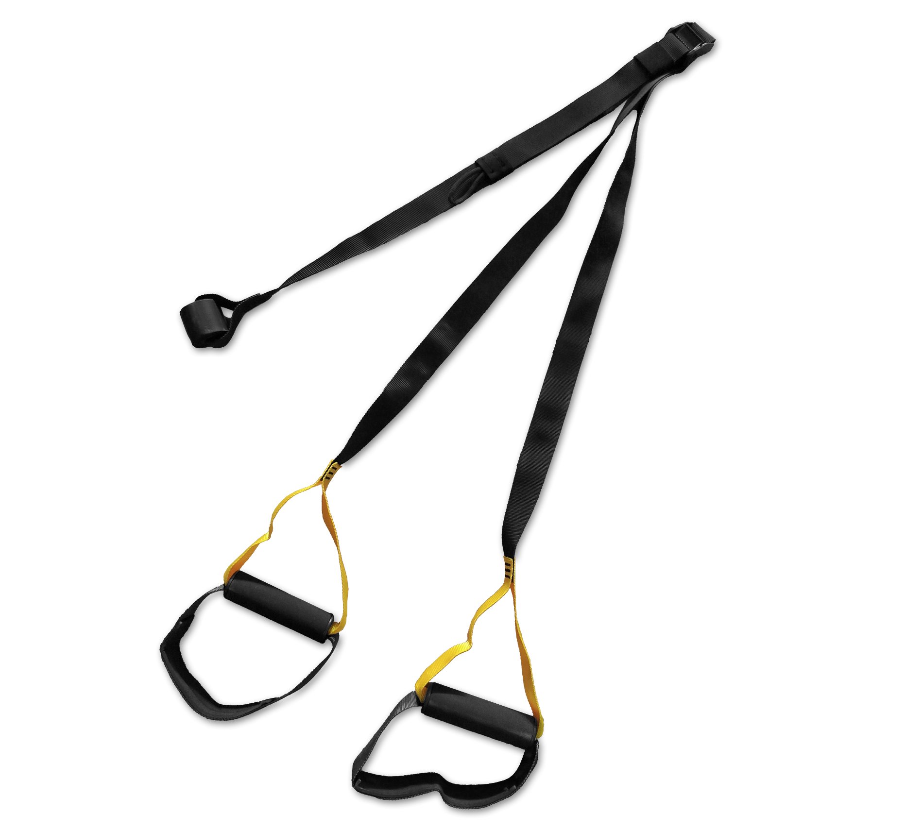 Tento profesionální závěsný systém je navržen pro funkční trénink celého těla. S černými popruhy a žlutými detaily nabízí ideální řešení pro cvičení s vlastní vahou, posilování svalů, zlepšení stability a flexibility. Robustní rukojeti z měkkého materiálu zajišťují pohodlí během cvičení, zatímco nastavitelný popruh v délce 120-200 cm umožňuje přizpůsobení délky pro různé typy tréninku. Díky jednodílnému designu je tento suspension trainer snadno přenosný a ideální pro použití doma, venku i v tělocvičně.